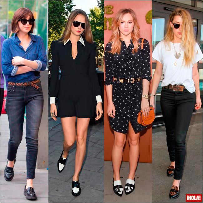 Versátiles y sumamente flexibles, los mocasines se antojan los compañeros más cómodos para vestir en las jornadas maratonianas, tanto acompañando a delicados vestidos como con outfits puramente casual. Así, pudimos ver a Dakota Johnson con unos discretos mocasines negros aderezando un look effortless de aire garçon. Mientras, Cara Delevingne y Suki Waterhouse conquistan la noche con el binomio infalible por antonomasia: el blanco y el negro. Desde luego, la opción perfecta para dar vida a un conjunto monocromático. En el caso de la primera, sus mocasines pertenecerían a la firma Jimmy Choo; en el de la segunda, estarán acuñados por Coach. Por si fueran pocas, Amber Heard se suma a esta tendencia con un modelo combinado con print animal, que no duda aderezar con su toque rock característico. Pero, ¿serán una inversión rentable a la larga? ¡Las pasarelas tienen la respuesta!