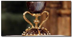 En términos simbólicos, al Grial se le presenta a menudo como un Cáliz que contiene la sangre de Jesús; y alternativamente como vino de uvas. El producto de las uvas es el vino, y es el cáliz y el vino de la tradición del Grial lo que subyace en el corazón mismo de la Comunión, la Misa, la Eucaristía; y este sacramento, el Cáliz sagrado, contiene el vino que representa la sangre eterna de Jesús.